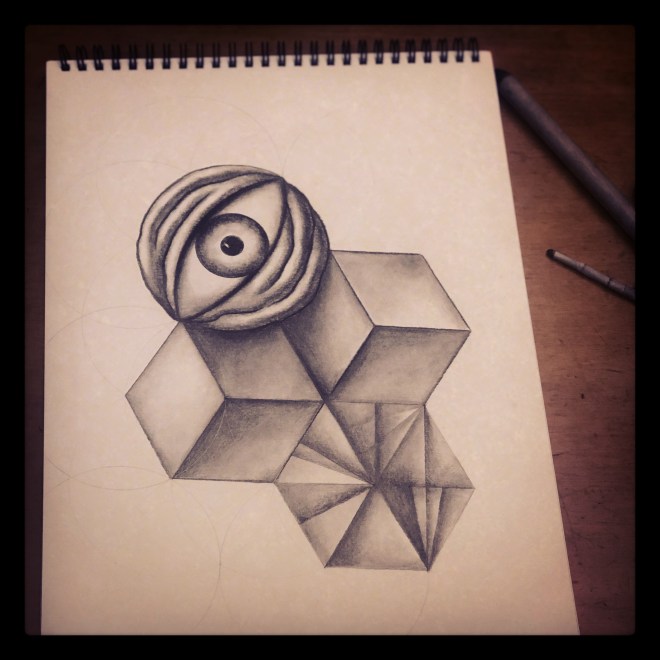 Parte de la inspiración de esta obra proviene de algo que leí en el libro Biología de la Creencia, donde su autor Bruce Lipton menciona que las proteínas cambian de forma 1000 veces por segundo creando un movimiento y funcionamiento similar al de los engranajes de un reloj con el fin de alimentar a la célula. Cierto o no, esto me despertó la imaginación que me llevó a pintar las proteínas como figuras de átomos vivos y conscientes que cambian de forma siguiendo siempre los patrones geometricos de la flor de vida con esa geometría perfecta en cada movimiento…