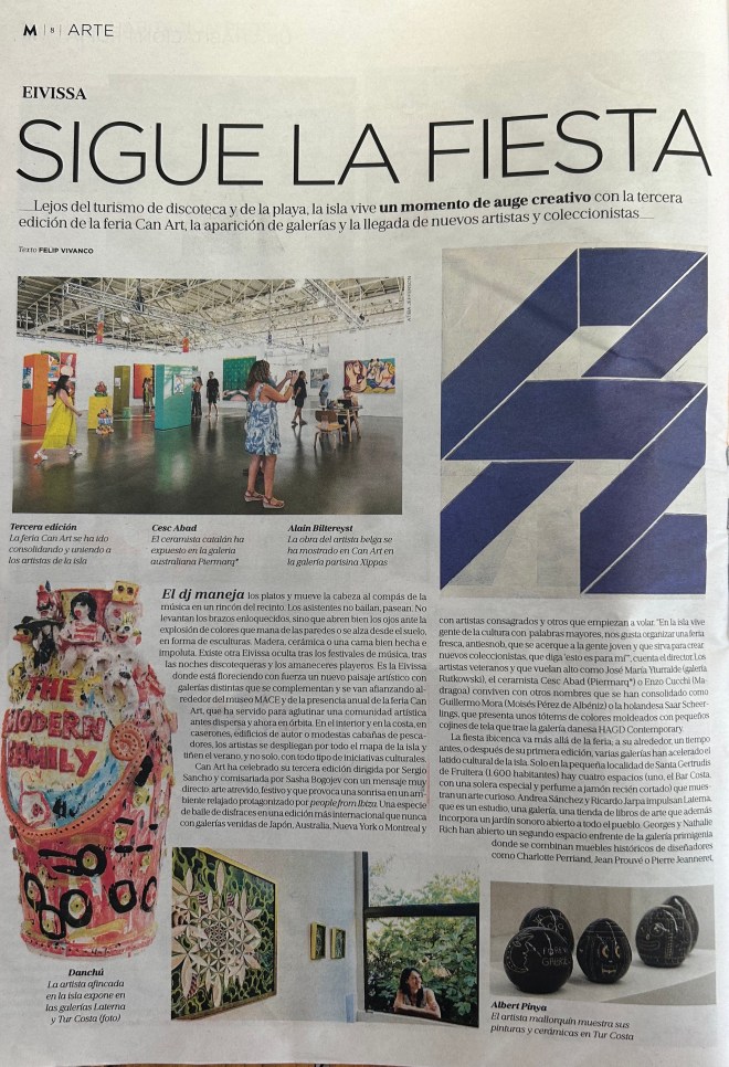 Reportaje, La Vanguardia Publicado el 1 agosto, 202427 septiembre, 2025 por danchuart View this post on Instagram A post shared by Danchú (@danchuart) https://www.lavanguardia.com/magazine/experiencias/20240728/9778038/eivissa-arte-feria-galerias-nuevos-artistas.html Compártelo: Haz clic para compartir en X (Se abre en una ventana nueva) X Haz clic para compartir en Facebook (Se abre en una ventana nueva) Facebook Me gusta Cargando... Relacionado