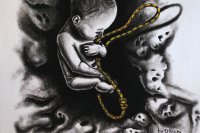 Oil and charcoal on wood, 1,22×2,50m, 2017. Sold// Oleo y carboncillo sobre madera, 1,22×2,50m, 2017. Vendido Atravesando una guerra mundial sin… Leer más Ants Leave Footprints…